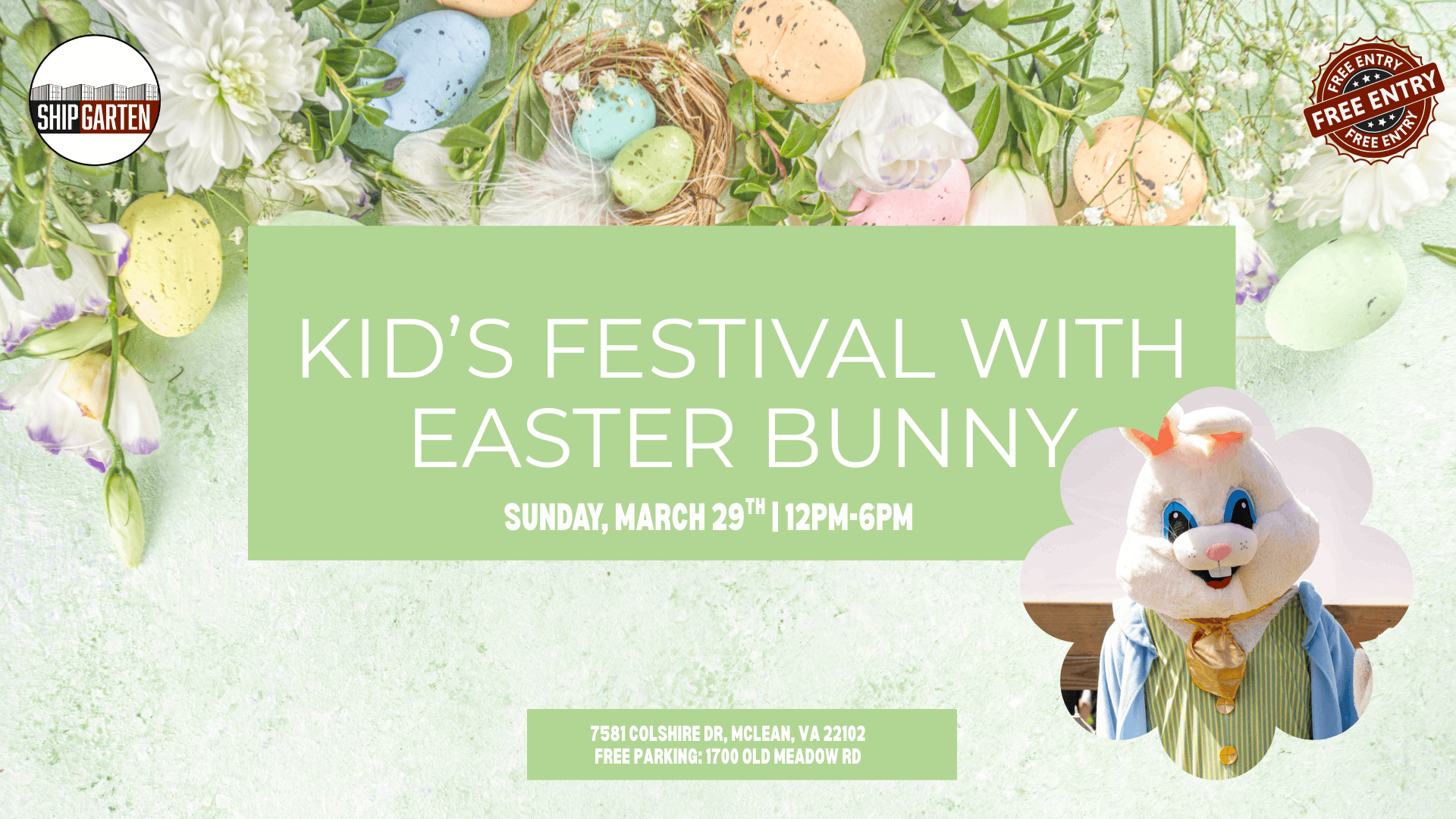 Join us on March 29th as we invite you to enjoy a day of excitement as we are having The Easter Bunny Host the kids & family festival!Step into a world of family-friendly fun at Shipgarten, Tysons Corner, the top restaurant for families! Join us on Sunday, April 20th , from 12 PM to 6 PM, as we invite you to enjoy a day of excitement as we are having The Easter Bunny Host the Kids and Family Festival. Bring the whole family for an unforgettable experience! For your little ones Shipgarten has FREE face painting and arts & crafts, allowing their creativity to shine. The fun doesn't stop there – we've got live music, great drinks, moonbounces, and a full outdoor playground to ensure everyone has a blast. Dogs are more than welcome at Shipgarten, whether on-leash or in our off-leash dog park. Treat your furry friends to Pup Cups and Kongs filled with peanut butter for a delightful family treat. ***Shipgarten opens at 11 AM & the festival runs from 12 PM until 6 PM. Restaurants close at 2 AM*** EVENT SCHEDULE: 12:00 - 6:00 PM - Easter Egg Hunts (40 kids per round until we run out of eggs)(Bring your own Easter basket) 12:00 - 6:00 PM - Face Painting, Moonbounces, and Arts & Crafts 12:00 - 3:00 PM - Live Magic Performance Photos with the Easter Bunny But that's not all! we offer (2) 155" TV Walls, 8 TVs, 2 outdoor projectors, and 3 indoor projectors, ensuring you won't miss any of the big games. Shipgarten Offers: 2 Moon Bounces2 Playground SetsPhoto Booth with AccessoriesKids’ Corner with Face Painting, Crafts, and MoreOutdoor Games & ActivitiesGiveaways, Competitions & PrizesDog-Friendly AtmosphereBier & SamplesGreat Food