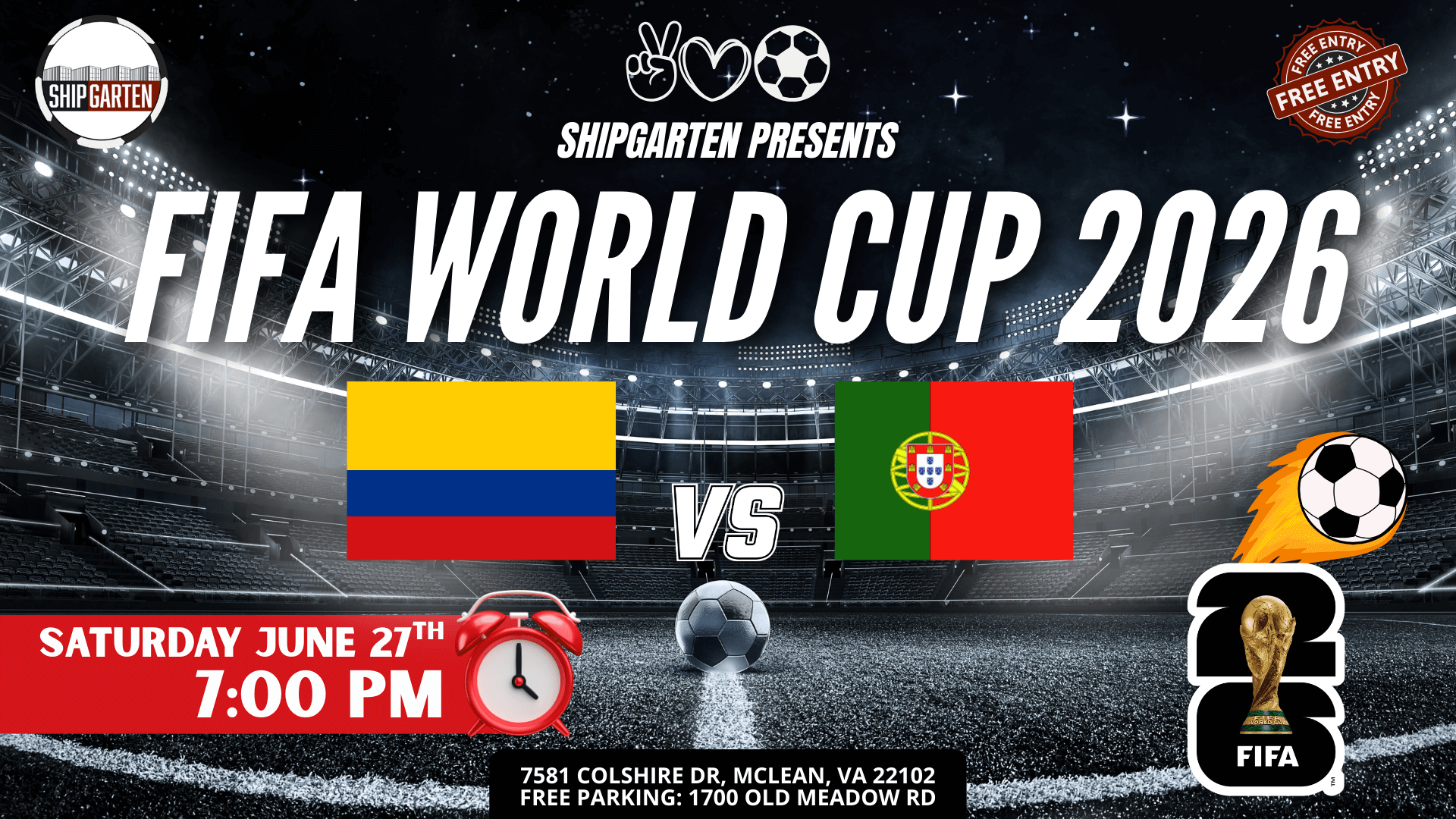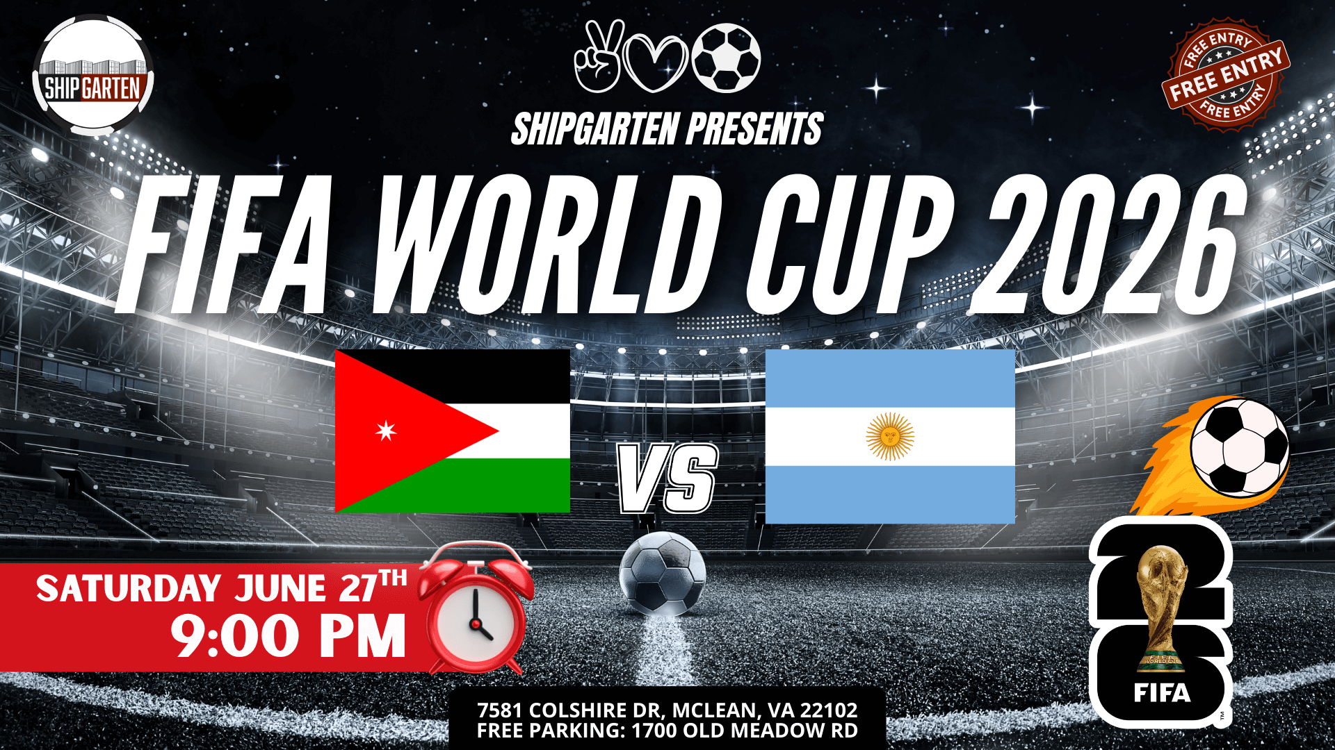 ⚡ THURSDAY NIGHT. WIN OR GO HOME. European Play-Off C fights for survival. USA fights for pride. 7PM kickoff. Prime-time intensity. Shipgarten becomes the biggest World Cup watch party in Tysons. 🔥 THIS IS HOW YOU WATCH A THURSDAY MATCH You clock out. You show up. You turn the volume all the way up. Massive screens & stadium-level sound $40 Mix & Match Beer Buckets (5 – 16oz cans) 100+ beer varieties available All ages welcome (21+ to drink) The most energetic World Cup crowd in Tysons This isn’t casual viewing. It’s elimination energy. 🏆 PRESSURE BUILDS UNDER THE LIGHTS One side fighting to qualify. One side defending home turf. Thursday night at 7PM means the crowd gets louder as the match gets tighter. Come early. Stay late. Celebrate big. 📍 GAME DAY DETAILS 📅 Thursday, June 25th 🕛 Kickoff: 7:00 PM📍 Shipgarten – 7581 Colshire Dr, McLean, VA 22102🚗 FREE & large parking at 1700 Old Meadow Rd🎟 FREE ENTRY – Pay only for what you consume 🍻 Coming with your crew? Upgrade your match day. More Info Click Here The biggest crowd. The coldest beer. The loudest World Cup in Tysons.