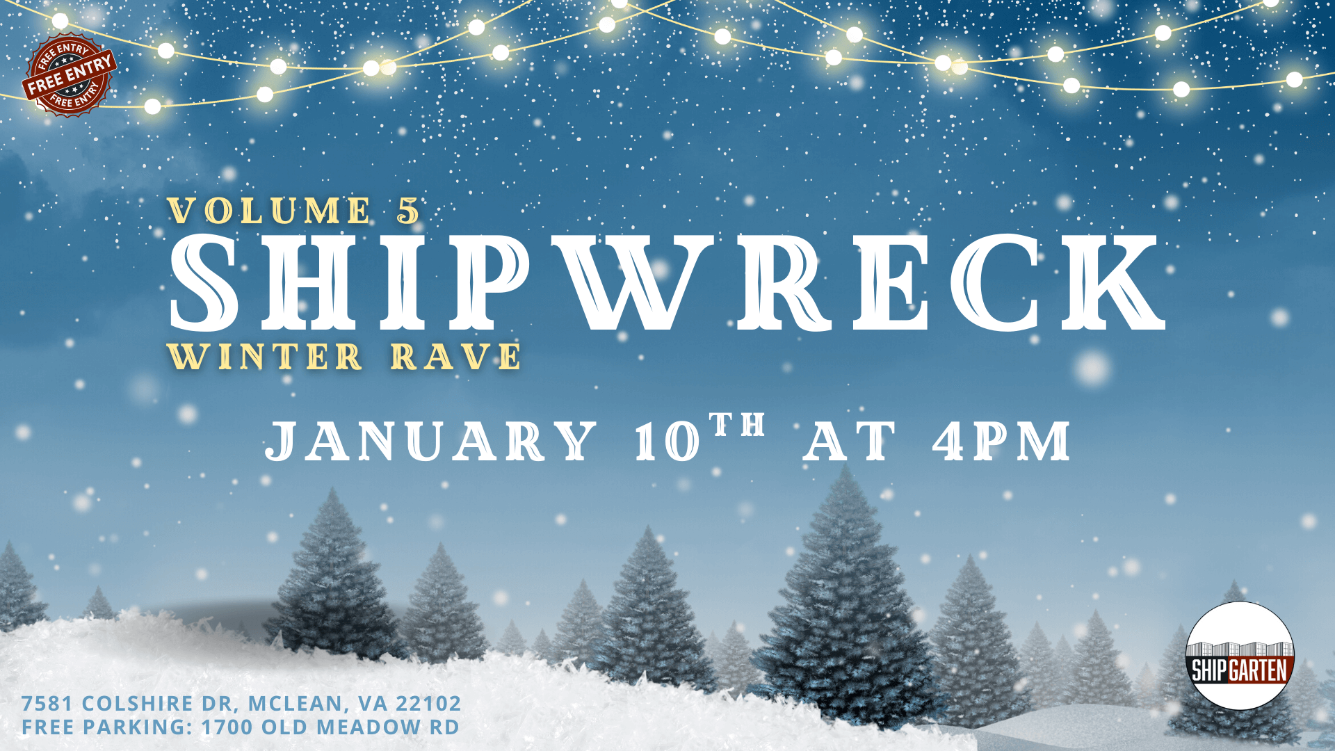 Shipgarten 7581 Colshire Dr, McLean, VABundle up and get ready to dance — Shipwreck: Winter Rave (Volume 5) is taking over Shipgarten on January 10th at 4PM! 🔥🎶 We’re turning winter into a full-on outdoor rave with icy visuals, high-energy beats, and Shipgarten’s signature party atmosphere. Expect nonstop music, great drinks, and an electric crowd as we keep the vibes hot even when the temps drop. Whether you’re coming for the music, the drinks, or just an unforgettable winter party, Shipwreck is the place to be. 🎧 What to Expect: • High-energy DJ sets • Winter rave vibes & immersive atmosphere • Full bar, craft beer & food options • Heated areas & festive outdoor setup 📍 Shipgarten 7581 Colshire Dr, McLean, VA 22102 🅿️ Free Parking: 1700 Old Meadow Rd 🎟 Free Entry Dress warm, bring your crew, and get ready to rave — Shipwreck style. ❄️⚡